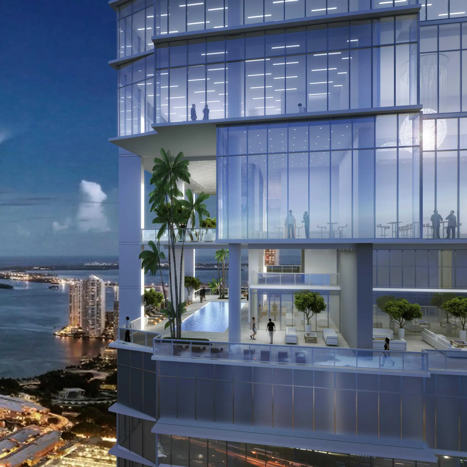 70 katlı Okan Tower Miami, bir çok fonksiyonel öğeye dikeyde vurgulayan ve bir yandan da ayrıştıran kavisli ve farklı formu; aynı zamanda katlar arası açık hava sosyal alanları sayesinde katların birbiri üzerinden yığılmalarını önleyerek, yaşamın içinde sonu olmayan bir silüet şeklinde yükseliyor.